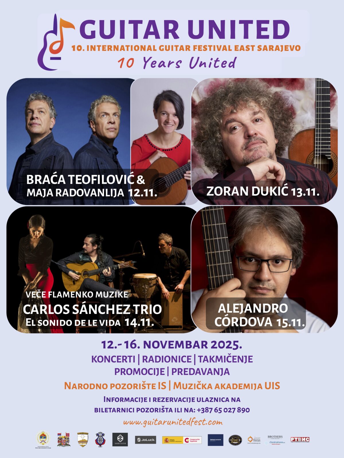 Istočno Sarajevo će od 12. do 16. novembra 2025. godine biti domaćin jubilarnog, desetog međunarodnog festivala gitare GuitarUnited Fest, koji se ove godine održava pod sloganom „10 godina zajedno!“.