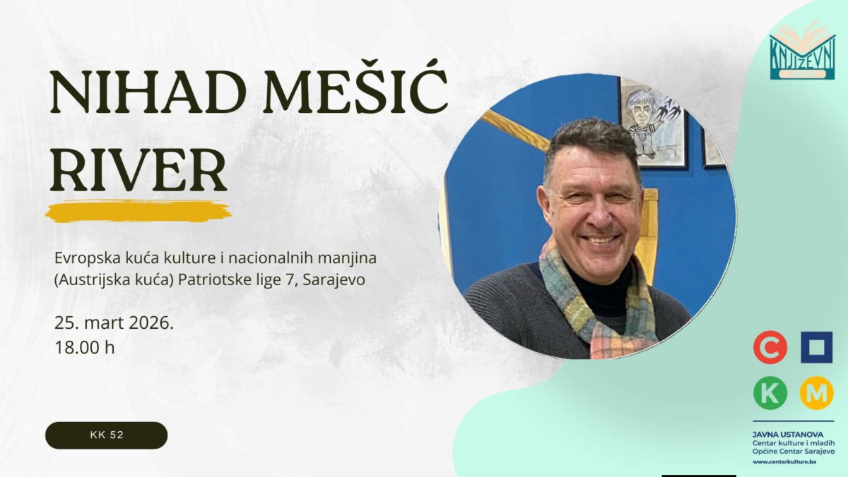 U Evropskoj kuću kulture i nacionalnh manjina (Austrijska kuća) koja se nalazi u Parku Kemal Monteno, gost na 52. izdanju Književnog kornera bit će Nihad Mešić River.