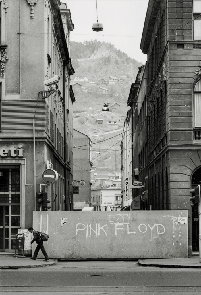 “Stajali smo nasred ulice, zaklonjeni od snajperske paljbe betonskim blokom na kojem je sprejom bilo napisano “PINK FLOYD” – jasna aluzija na mračnu pjesmu, koja kaže …all in all, you are just another brick in the wall… – i plakali. Ljudi su prolazili pored nas i ne obazirući se, jer u Sarajevu nije bilo ništa neobično vidjeti odrasle ljude kako, usred bijela dana, bez ikakvog zazora, gorko plaču na ulici.”